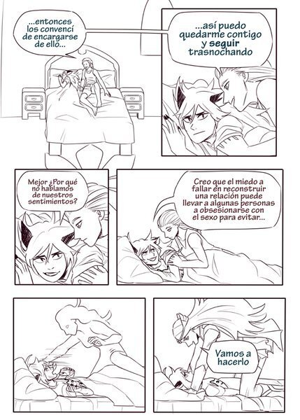 —Te dije que la vida en este lugar era genial. Sabía que lo disfrutarías, y que sería bueno para ti. Para nosotras...— No era capaz de ocultar del todo su emoción. Mara se lo había dicho, merecía amar y ser amada, y Catra lo merecía también después de tanto sufrimiento. —Además, podemos comer pastel todos los días, con las manos.— Era sin duda una de sus actividades favoritas y soltaba aquélla charla casual mientras sus dedos acariciaban suavemente la espalda de la felina.