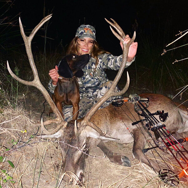 ¿Quieres que cobre venganza por tí, querido?. -Observa a la mujer cazadora cómo se vanagloria por su caza. Ella mató a un pariente de su ciervo.-