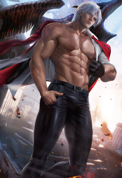 Y también confiado. == Una pequeña sonrisa se dibuja en sus labios == ¿No sería mas apropiado usar la ropa? No le dejarán entrar si quiere ir a comer conmigo. En cuanto a las alas... Déjelas. Quedan a juego con el atuendo.