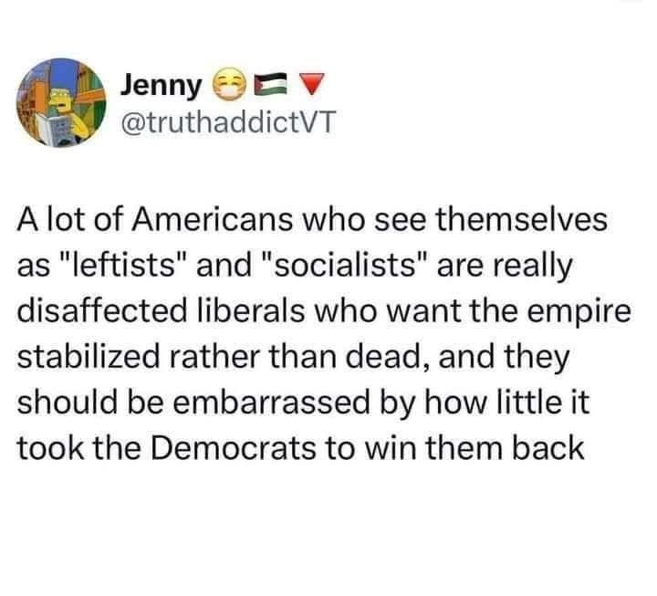 If you are "on the left" and just waiting for another Democrat to be elected for things to "go back to normal", you are not a part of the left. You are still in the right wing ideology.