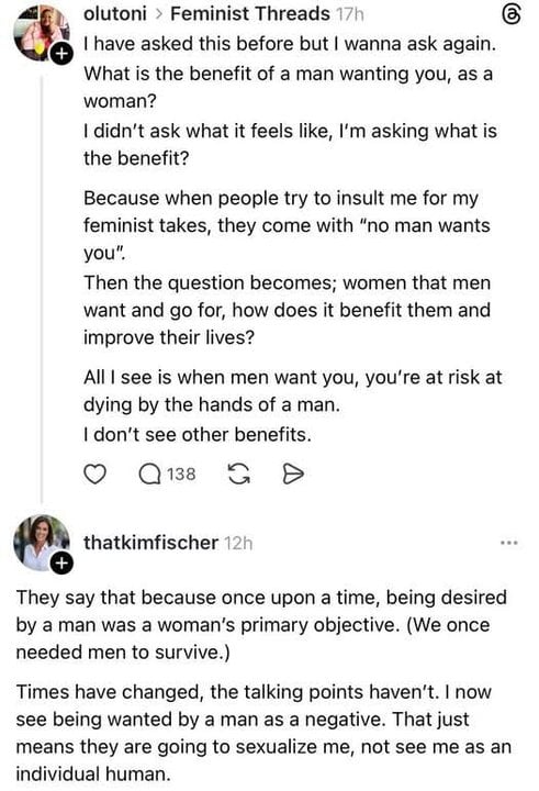 I think about this a fair amount. It would seem that homo sapiens continue to exist because of some instinctual need to reproduce. Then the question is how much love is related to some societal "normal" or a "species need?" Did evolution wire the human brain to have the male so attracted to the female? Without some degree of sexualization, would the species have died off thousands of years ago?