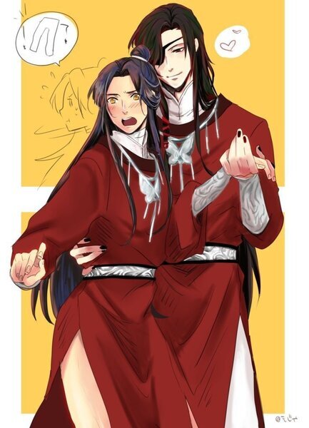 Le iba a volverle hablar cuando se percata que se ha quedado dormido, que solo le observa por uno instantes sin emitir ningún ruido que le fuera interrumpir el sueño. Hua cheng, tendría una sonrisa de ¿alegría ? en lo labios. —