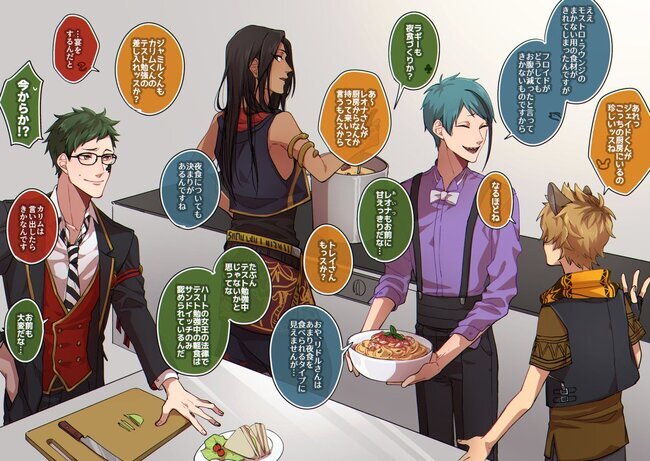 Le comenta a Trey: —No sé por qué presiento que Ruggie nos está dando muchas indicaciones para distraernos y comer lo que vamos preparando... (??)