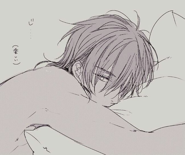 .- Le olfatea tras la nuca no sin antes dejar una mordida en la zona de su cuello .- No soy el unico aqui que huele a celo y sexo~ Jajaja descansa~ .- Se pone de pie para no volver a ser golpeado con el arma letal que es la almohada ( ?) .-