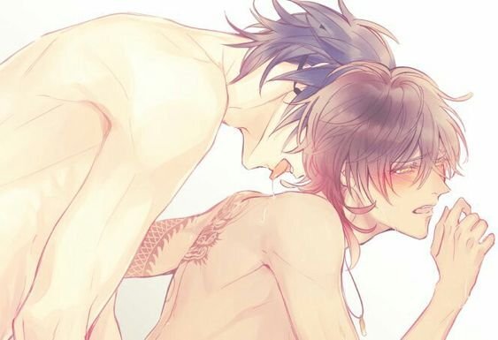 Al salir del interior de su novio se ve obligado a soportar dicha tortura, se pone de pie llevando consigo al moreno, aprovechando que este esta de pie frente a el y recorrer con sus manos fuertes cada centímetro de ese torso, acariciando desde el miembro erecto de este subiendo lentamente por su abdomen hasta detenerse sobre su garganta en donde cierra su mano con firmeza.-