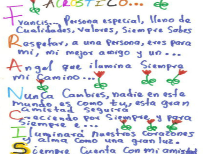 Un acróstico que escribí hace años a mi mejor amigo y hermano Francis Harcourt, lo hice con mucho sentimiento, con el corazón, quise subirlo aquí para recordar esos tiempos hermosos, verdaderos y simbólicos con aquellas personas que siempre estuvieron a mi lado desde tiempos de HI5, una de esas personas fue nuestro gran amigo y hermano Francis, junto a mi hermana Namine y otras personitas maravillosas que siempre recuerdo con mucho cariño. Muchas gracias por haberme brindado lo mejor de una amistad y valiosa hermandad, que a través de los tiempos considero que fue eterna.