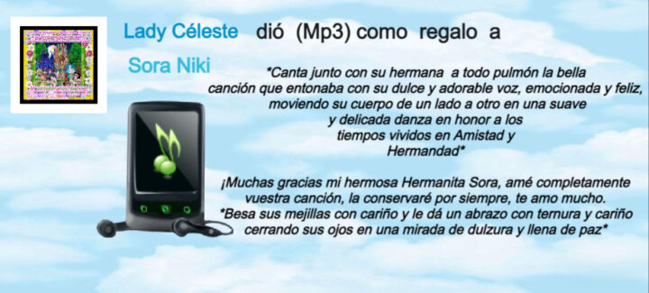 "Un hermoso obsequio que compartí hace tiempo a nuestra gran hermana Sora Niki en nuestra familia y Comunidad Iorbix, solo que mi hermanita hermosa debido al cierre de la cuenta de ella que estaba ausente y no volvió a aparecer y debido a los cambios de nuestra Comunidad Iorbix y cierre de la misma para evolucionar a nuestra nueva familia Similar Worlds, se perdió la ofrendita que le envié a mi hermanita Gatita, por eso quiero subirla aquí, si ella llega a volver, para que la vea, que si os contesté, y si ahorré bastante para conseguirle la ofrenda, como 3 meses, de hecho, tenía una gran cantidad de Dinero ahorrado en nuestra Comunidad Iorbix y pues como no alcancé debido al cierre y debido a todo lo que pasó, pues solo puedo hacer esto por el momento, espero que nuestra hermanita Sora Niki pueda verlo y recibir un nuevo obsequio de parte mía, que ahora estoy ahorrando ahora aquí en nuestra nueva familia Similar Worlds, por si mis familiares regresaran o volvieran a aparecer yo les tendría sus ofrenditas y bueno os quiero mucho hermanita hermosa, espero os sea de agrado esta ofrenda, de vuestra hermana Céleste, La Rosa Violeta Celestial, para mi grandiosa hermana Sora Niki".