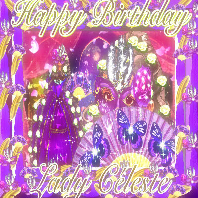 Memories: En mi mansión, luciendo un hermoso traje morado y luciendo un brillante y bonito antifaz con hermosas rosas violetas plumas doradas, diamantes blancos brillantes y hermosas rosas blancas adornando mi traje y largos cabellos plateados risados.