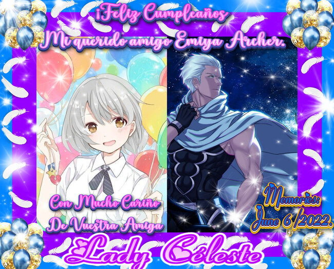 ๐๐๐๐โจ๐ยกUna tarjeta de Cumpleaรฑos, ofrenda especial que hice en homenaje a nuestro gran amigo Emiya Archer en vuestro dรญa 6 de Junio del 2022, espero que lo hayรกis disfrutado mucho, comiendo el pastel que mรกs disfrutarais y os gustara y en compaรฑรญa de vuestros seres queridos, que siempre gocรฉis de muy buena salud, muchos รฉxitos, con cariรฑo de vuestra amiga Lady Cรฉleste y de toda vuestra familia Souvenir Ma Famille Le Jardin Des Meilleurs Amis, Comunidad Iorbix!๐๐โจ๐๐ฅณ๐ฅณ๐ฅณ๐ฅณ๐๐๐๐๐๐๐๐๐๐๐๐๐ผ๐ป๐ฆ๐พ๐พ๐พ๐ค๐๐๐ฅ๐๐ธ๐ต๐น๐บ๐ป๐ผ๐ทโ๐๐๐๐๐โฒ