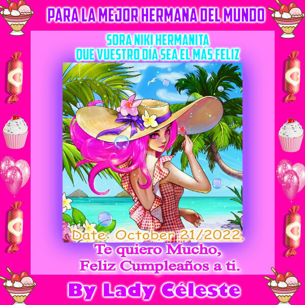 Más ofrenditas para nuestra grandiosa hermana Sora, una linda tarjeta, donde está disfrutando en las hermosas playas, disfrutando de la arena, del sol y del mar, espero que os sean de agrado estos detallitos que hice con mucho cariño para ti en honor a vuestro 21 de Octubre del 2022.