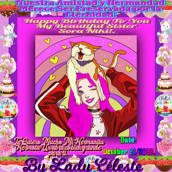Nuestra grandiosa mejor amiga y hermana Sora, jugando muy feliz con uno de sus guardianes felinos, se ven muy lindos ambos, disfrutando del mejor Cumpleaños del 21 de Octubre del 2022.