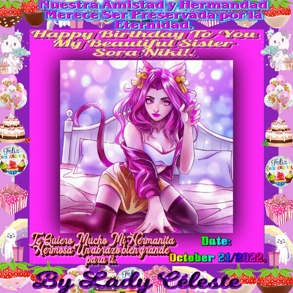 Mi Hermanita Sora en su Cumpleaños feliz, estuvo divirtiéndose como nunca, con toda la familia, amistades y hermandades Souvenir Ma Famille Le Jardin Des Meilleurs Amis, Comunidad Iorbix a nivel mundial, también hizo en su hermosa y grandiosa celebración especial una sección fotográfica, en donde brindaba sus mejores poses hacia la cámara y la estaba pasando muy bien.