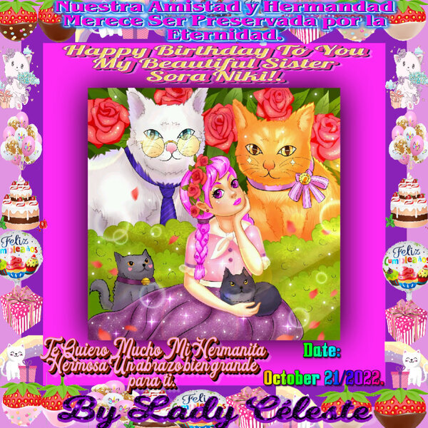 Familia Gatuna, esta foto en especial representa cuanto nos importáis mi querida hermana Gatita, que la estéis pasando super agradable y muy feliz, espero os haya sido de agrado cada una de mis ofrendas, que hice con mucho cariño para ti, porque os queremos demasiado y esperamos en verdad que haya sido el Cumpleaños más feliz. Un abrazo muy grande, fuerte y cariñoso, de parte mía y de toda vuestra familia Souvenir Ma Famille Le Jardin Des Meilleurs Amis, Comunidad Iorbix, siempre estaremos para ti hermanita, recordadlo siempre. ¡Feliz Cumpleaños a ti, te amamos mucho! 💗💜🌏🌅🌠