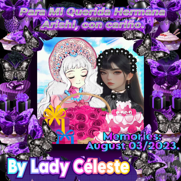 Junto a nuestra querida gran hermana Arishi, celebrando con toda su Cumpleaños feliz del 03 de Agosto del 2023, traje pastel, obsequios, un hermoso ramo de flores junto con mi presencia y hermosos deseos para que siempre seáis muy feliz hermosa hermanita! ^.^ <3🎉🎊🎊🎊🎉🎉🎉🎊🎊🎊🎈🎈🎈🎈🎈🎈🎁🎂🥂🍇💜❤🧡💛💚💙🤎💜🤍💗💖💟🥇🏆🧸🎶🎵🎹🎵🎶🎷🎵🎶🎻🎵🎶🎸🎵🎶🪕🎵🎶🎵🎙🎵🎶🎵🎶🎺🎵🎶📬📝🙇♀️🙋♀️🤗🥳🥳🥳🥳🦄🐼🐻🐾🐾🐾👋👏👏👏👏👏✍🙏😇