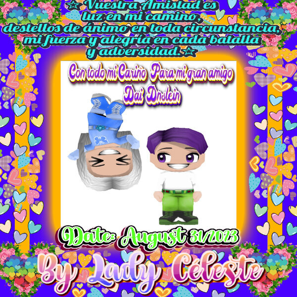 ¡Nuestra amistad es tan agradable, sincera y mágica que considero que es la mejor del Mundo, de nuestra Comunidad Iorbix y de toda mi existencia en mi familia de Amistad y Hermandad, os agradezco por siempre brindar lo mejor de ti y nunca cansaros de hacer el bien y de mostrar cuanto aprecia la amistad que nos une tanto como yo, por ello y más gracias por existir y ser un amigo verdadero en mi vida, amigo Dai, que nos esperen muchos gratos momentos por vivir, recordar y nunca olvidar!.