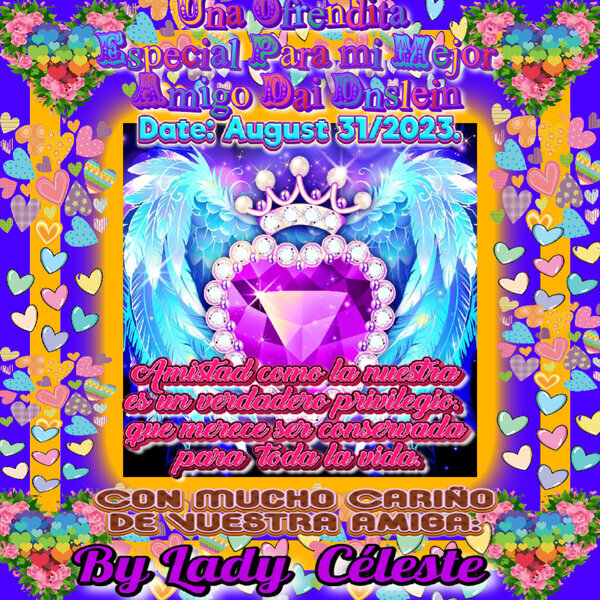 ¡Esta obra de arte es símbolo del gran cariño, aprecio y admiración y de la forma cuanto atesoro y el significado más grande de nuestra amistad amigo Dai, eres un ser tan bueno y de gran corazón, me alegra mucho el poder contar con vuestra presencia y juntos compartir lo bueno, mejor e inolvidable de una amistad tan grandiosa como la nuestra, aquí y siempre apoyándonos y brindándonos siempre lo mejor, que vuestros sueños y propósitos os hagan siempre realidad, mucha felicidad, prosperidad, paz, armonía y todo lo mejor en vuestra existencia y familia, son mis más sinceros deseos! 💖💜💙💚💛🧡❤🤍💗💌💟🎉🎊