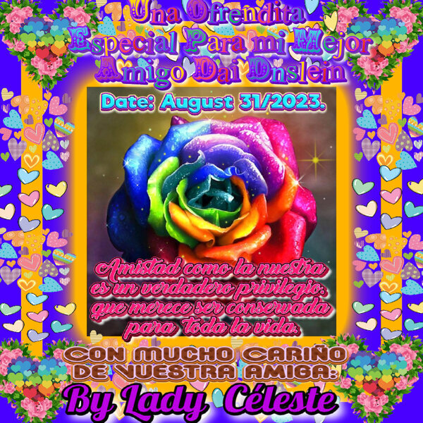 El significado de esta hermosa rosa y sus colores tan hermosos representan el valor de nuestra gran amistad en todo lo bueno persevera y siempre perdura en nuestras almas y corazones lo grandioso, especial y sincero de nuestra amistad, aquella que traspasa las dificilidades y demás impedimentos, traspasa las grandes ausencias, silencio, soledad y muchas adversidades y pruebas, por eso llamo verdadera nuestra gran amistad, un tesoro, una luz que siempre nos acompaña y nos ayuda con gran ánimo y energía para seguir a adelante, por ello y más os agradezco amigo Dai por ser como eres. 💖🤗�🌍🌠