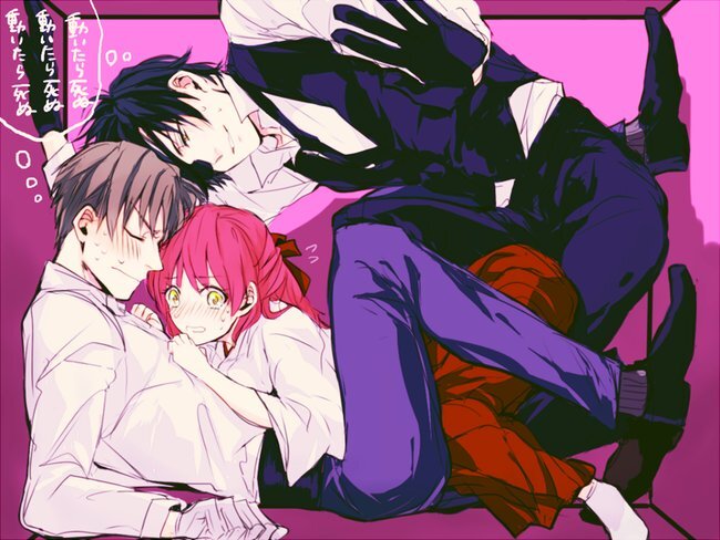 - Hace una molestia mueca debido a que la rodilla de Mari estaba sobre sus bajos. De inmediato fulmina con la mirada al pelinegro. -