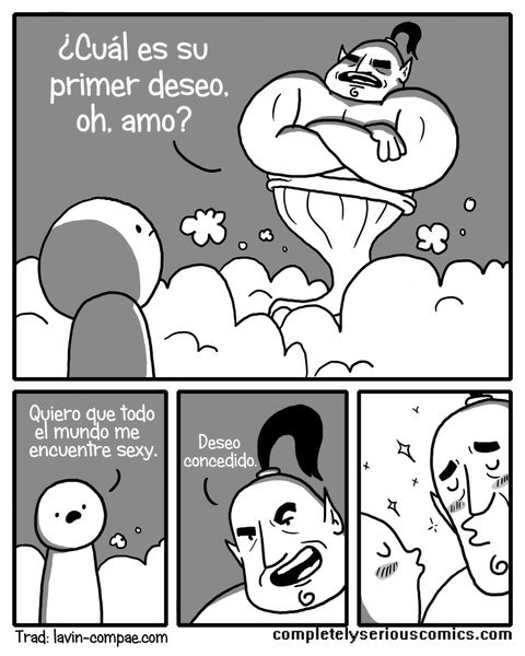 -¡¿Pe-Pero qué haces aquí?! ¿No se supone que ibas a pensar en un deseo para después invocarme? ¿Y cómo pudiste entrar a mi lámpara? -Le bombardeaba con preguntas, confundido. Era la primera vez que un amo lograba entrar a la lámpara y eso podía resultar muy peligroso.