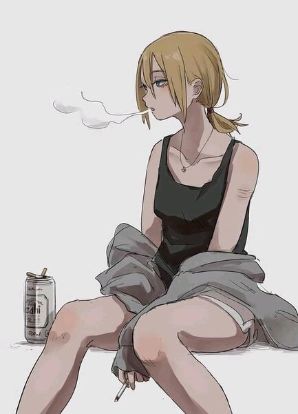 Damn woman. -He says, but if he could smile maybe he would.- What's your name? -Added in a dry tone at the time he pick only one cigarette to light it up before step on the packet.-