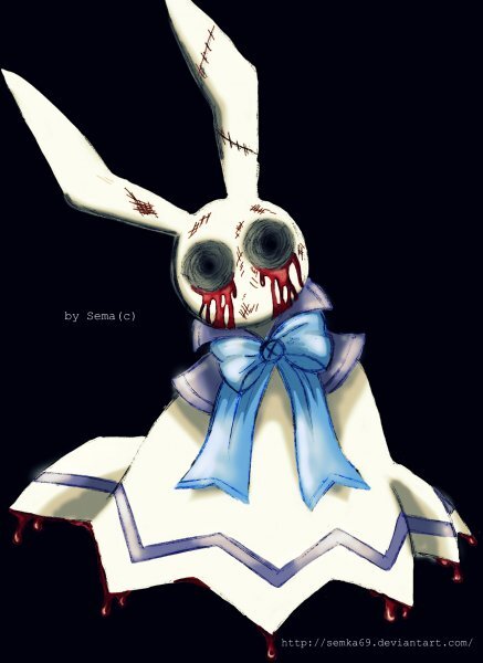 El Abismo. Aquel lugar donde reina la infinita oscuridad donde solo hay silencio y soledad interminable, donde terminan las esperanzas y los sueños...En las profundidades de aquel lugar , existe una habitación, similar a la de una torre Una habitación circular rodeada de grandes ventanales, los mosaicos en combinación roji - negra simulan un extraño y siniestro tablero de damas. En este extraño lugar la decoración es por demás fuera de lo común, grandes anaqueles con repisas repletos de peluches, muñecas y otro tipo de juguetes con una apariencia siniestra que hacen juego con la mezcla de soledad, tristeza e inmensa ira que apesadumbra el lugar, Sentadito entre los peluches se encontraba un singular conejito blanco , Este se encontraba cubierto por una capa azul y un listón de un azul un poco mas tenue el cual rodeaba su cuello terminando en un encantador moñito. Aquel conejito se encontraba llorando lagrimas carmesí, tapando sus ojitos con ambas patitas* Por que no a regresado? **sollozaba el pequeño conejito, sin embargo en su siniestra casa de muñecas se hace presente un nuevo invitado, aquel invitado que habia permanecido oculto por muchos, muchos años "Oswald Baskerville" hermano de su madre* Tu!........*pronunciaba con una graciosa y linda voz el conejito al mirar de quien se trataba*