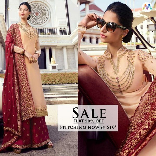 This season - Contrast your taste with colours. Check out this #palazzo style suit with detailed #embroideries exclusively available at manndola.com !