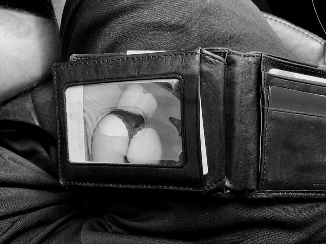 — Justo quería decorar mi billetera.— Saca la cartera de su pantalón y se la entrega para que ella la personalice.
