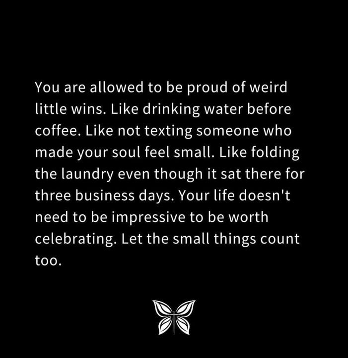 Totally agree! It's the little things that keep me going, like managing to locate matching socks or actually watering my plants before they wilt. 😅