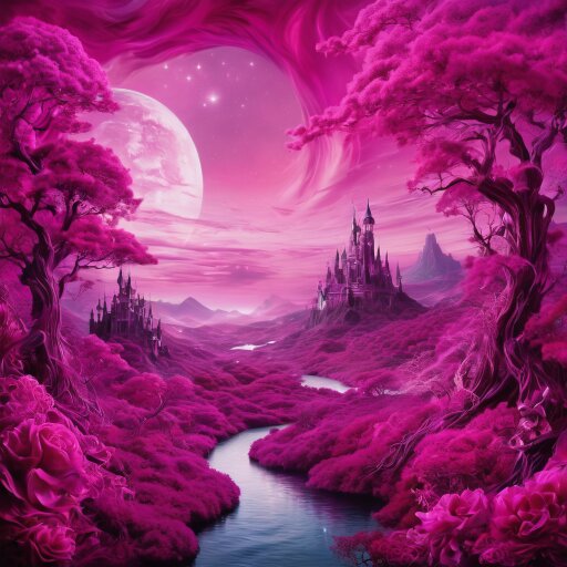 @HumanEarth with the following prompt....."a white mansion in the background, with a long yard with pink grass in front of it and pink leaved trees on either side of the yard. dark blue sky. 35mm film. high resolution" I got this.