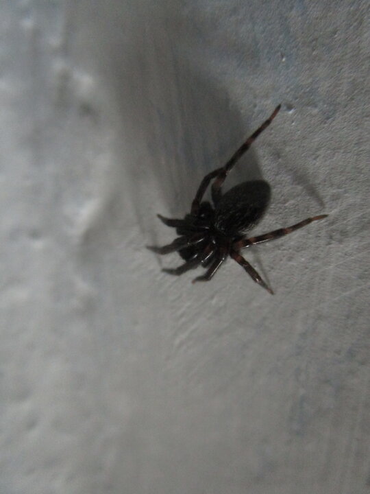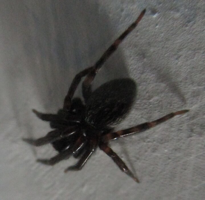 When I arrived home from work and sat is my sitting chair I espy directly above me a massive Black House Spider.