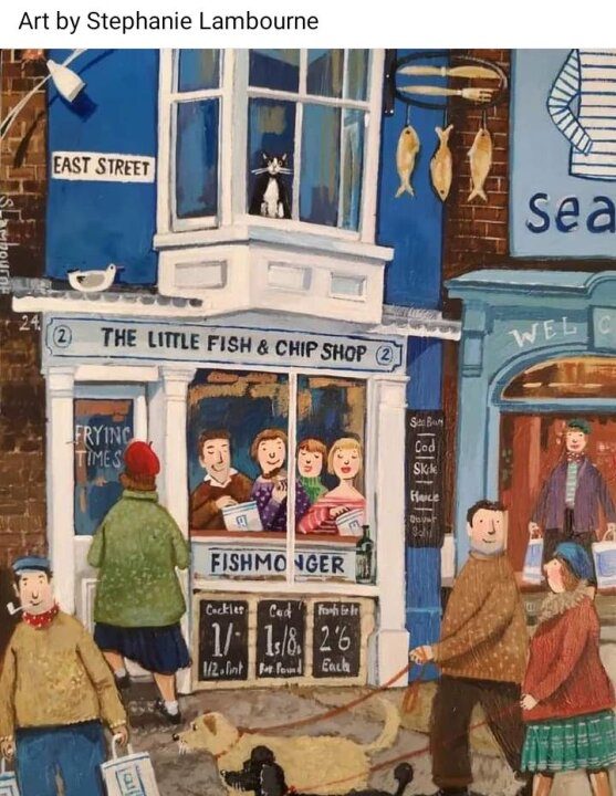 Love this....especially the people in the window eating fish and chips!! โบ๏ธ