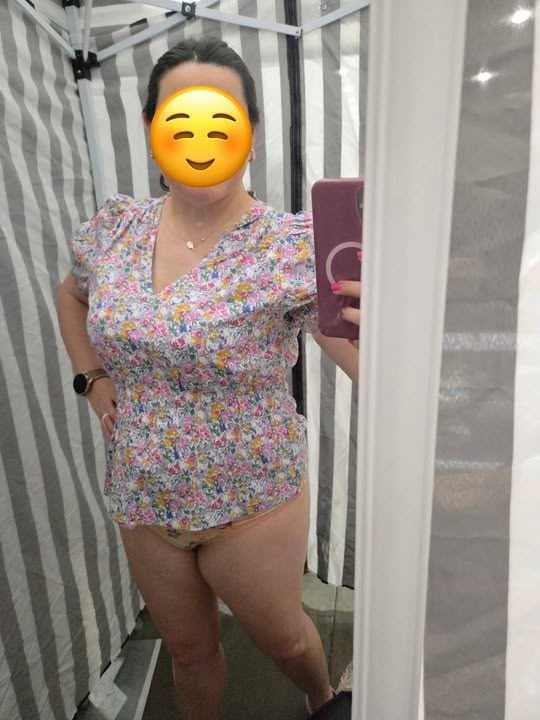 Yesterday we were at an event with a ton of merchants all in rows with thousands of people in attendance. Wifey finds a cute top she likes and sees that they have a little single-person tent where she can try it on. She goes into the tent and to my surprise sends me this pic to see if I like the top.