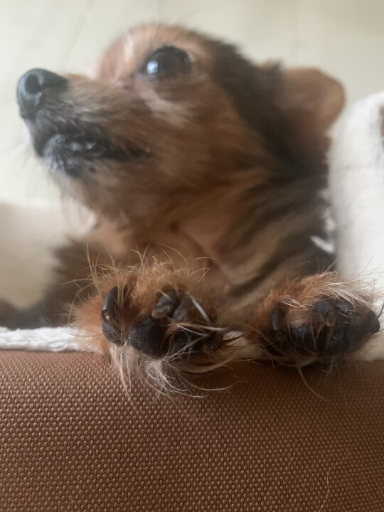 Poor baby. The little guys have painful paws if they get too much hair between their claws. The dog needs to see a groomer.
