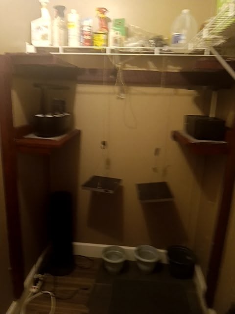 The new closet is under construction. It features enough growing for 10 large plants, 2 aerators, hydroponic and the best part is it comes with all the growing supplies on custom shelves, and it even has a circulating air fan humidity, stones and will have plug and play feed and irrigation for same quality every time in a controlled environment. It is twice the output that I had previously.And then , on top of that , the workshop shall rise again