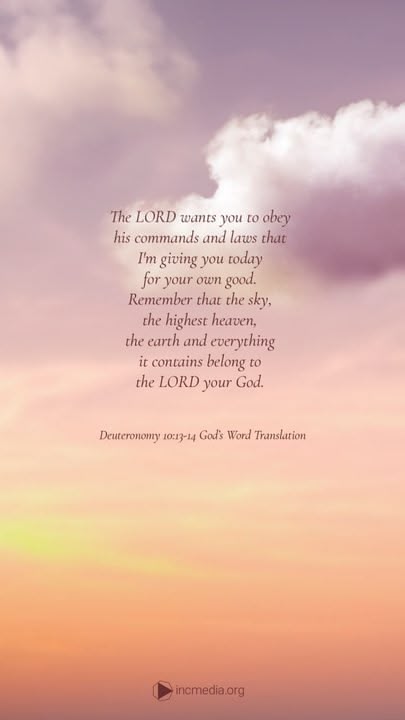 Deuteronomy 10:13-14 GWT The LORD wants you to obey his commands and laws that I’m giving you today for your own good. Remember that the sky, the highest heaven, the earth and everything it contains belong to the LORD your God.Deuteronomy 10:13-14 GOD’S WORD Translation Post Comment Receive notifications Add a comment...