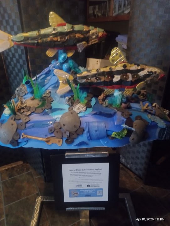 So tomorrow during the day at my work before I get there on close they are having some kind of event... And apparently the Tennessee Aquarium in Chattanooga,Tn brought my work this Sculpture to borrow for tomorrow for the event... Apparently it's a sculpture made out of recycled trash... Soo it's kinda cool... But yeah... Just thought I would show that.. 🐟🐟🐟🐠🐠🐠❤❤❤❤