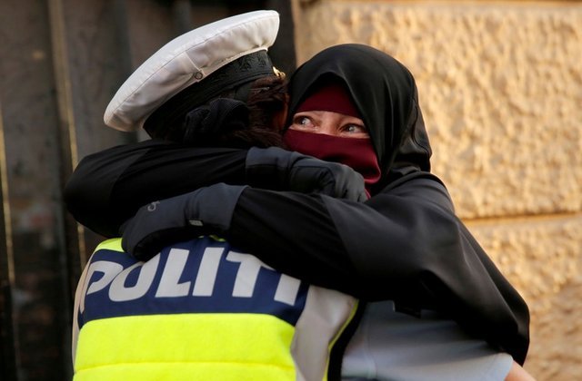 Have you seen the news story about a Denmark cop hugging a protester ?