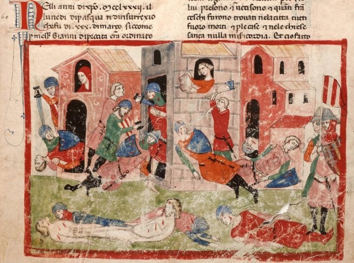 Charles' Vicar Herbert and his family were safely within castle Mategriffon, but after negotiations the rebels granted Herbert and his family safe conduct to leave the island upon a promise that they never return. After the restoration of order in the city, the townsmen announced themselves a free commune answerable only to the pope. They elected leaders, one of whom was Bartholomaeus of Neocastro who was prominent in the unfolding events and would later chronicle much of the revolt in Historia Sicula, an important if sometimes contradictory source of information for historians. Again significantly, the leaders' next act was to send word, via a Genoese merchant named Alafranco Cassano, to the Emperor Michael advising him that his nemesis Charles had been crippled. Only thereafter were ambassadors sent to Pope Martin IV pleading for each city on the island to be recognised as a free commune under the sole suzerainty of the Holy Church. The islanders were hoping for status similar to that enjoyed by Venice, Genoa, Pisa and other cities, which were free to form their own government but morally answerable only to the Pope, who would hold a vague and unstable suzerainty. However, the French pope was firmly in Charles' camp and he directed the Sicilians to recognize Charles as their rightful king. But Martin underestimated the Sicilians' hatred of the French, and especially of Charles, who ruled from Naples rather than Palermo, where he could have seen the suffering caused by his officials. Charles' island officials were far removed from his oversight; he did not see the avarice, the rape, theft and murder, nor did he see the high taxes levied against the meager possessions of the peasants, which kept them impoverished, but made no improvement in their lives.