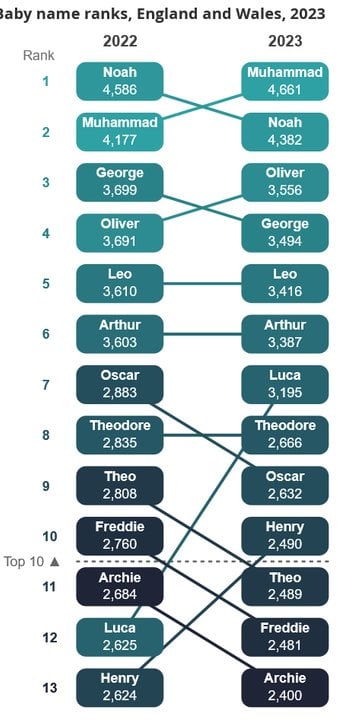 But "Noah" was 1st in 2022 and 2nd in 2023.