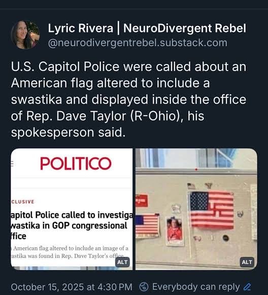 AMERICA, WHY DO YOU HAVE A REPUBLICAN REPRESENTATIVE WITH A SWASTIKA AMERICA FLAG?