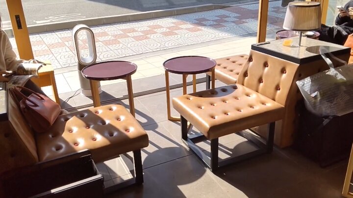 Tashiro-san led me to this much fancier café that was partly open air. It had nice, comfortable seats you could slouch in, lol. They also had wifi and little outlets for people to plug in their devices. It was actually encouraged that you stay there for a prolonged period of time! Good thing Tashiro-san and I were able to find ourselves a table.