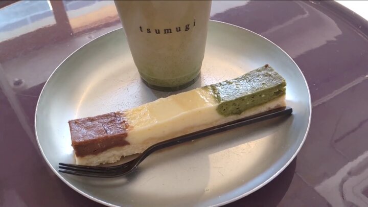 This place had a signature drink and dessert: a green tea latte and a three-colored cheesecake. I ordered both, of course, and I was digging the cheesecake right away because its three colors were red, white and green. Just like the Italian flag!