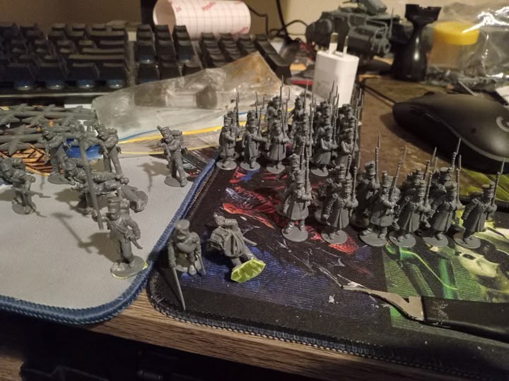 This isn't all of them, as the rest are still to be built, but it is a majority of them. They're in ranks of 6 because the set is designed to represent each company with 6 figures to a single base. Although they do give you two companies of voltigeurs, one marching and one skirmishing/shooting. I just wish the instructions were better, because they're genuinely terrible. I had to look up the information as to who was meant to have what online, and it took until today to find out who was meant to have what (I have built them mostly wrong)