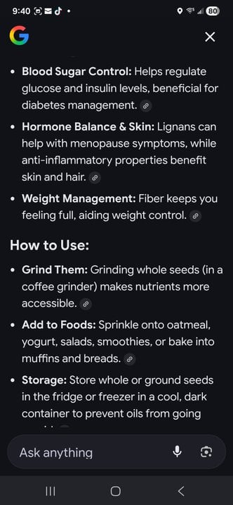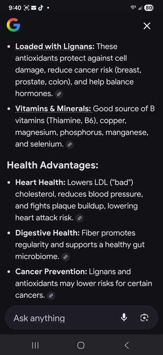 I've only ever really eaten flax seeds cooked after I finish boiling them for my hair gel. Suppose using them in salad with the other seeds I use would be good 😊