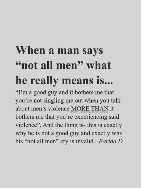 It's really not that hard and yet, we're still here fighting this fight because of men who need their hands patted and assured by women that they are a "good guy", which makes them not a good guy as they haven't grown into their own masculinity
