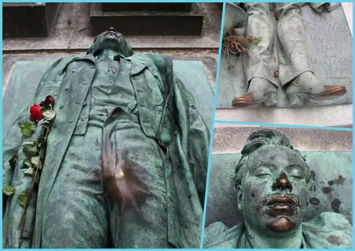 The sculpture: A life-sized bronze statue was created by sculptor Jules Dalou after Noir's body was moved to the cemetery.