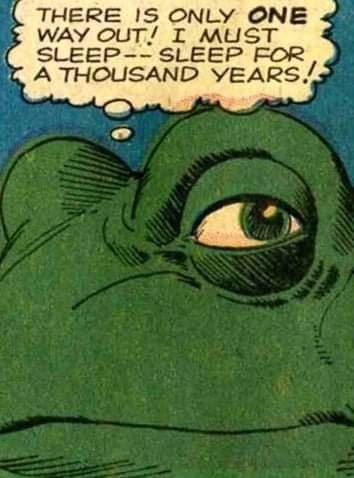 I recognise this image, it was drawn by Steve Ditko. The story was about an evil magician who turned himself into the shape of a frog to travel into the future by hibernating.