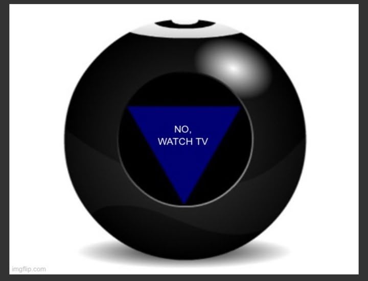 I asked someone's Magic 8 Ball if I should watch a movie from my collection tonight, i'm afraid because I might rather just listen to my audiobooks while I have the tv on the American News, partially because I was brought up on those prophecy fellas like Jack van Impe, thinking that if the 2nd coming happens surely they'd show it happening, eh?