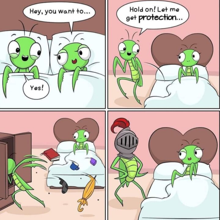 During mating, the female praying mantis bites off the males head and then devours his corpse for nourishment.... Post Comment Receive notifications Add a comment...
