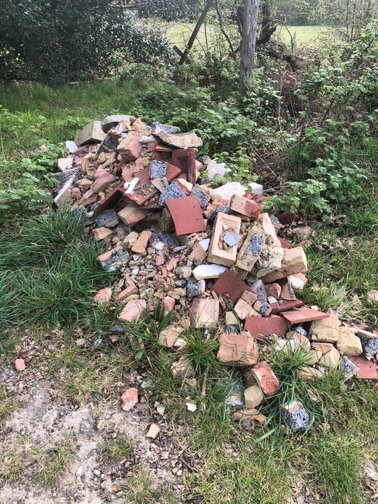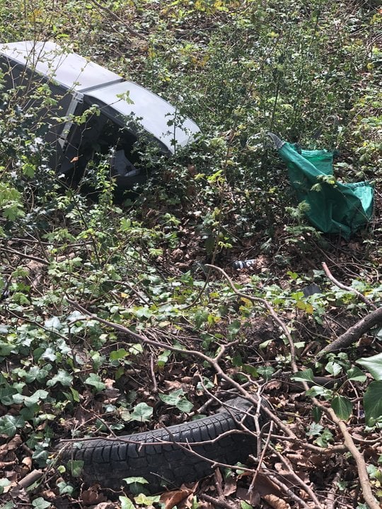 The beautifully managed woodland, sits in juxtaposition with the careless disregard for the environment by the builders waste. Callously blocking a public footpath